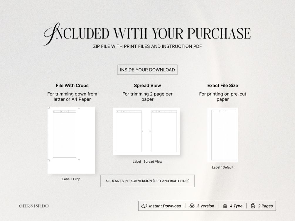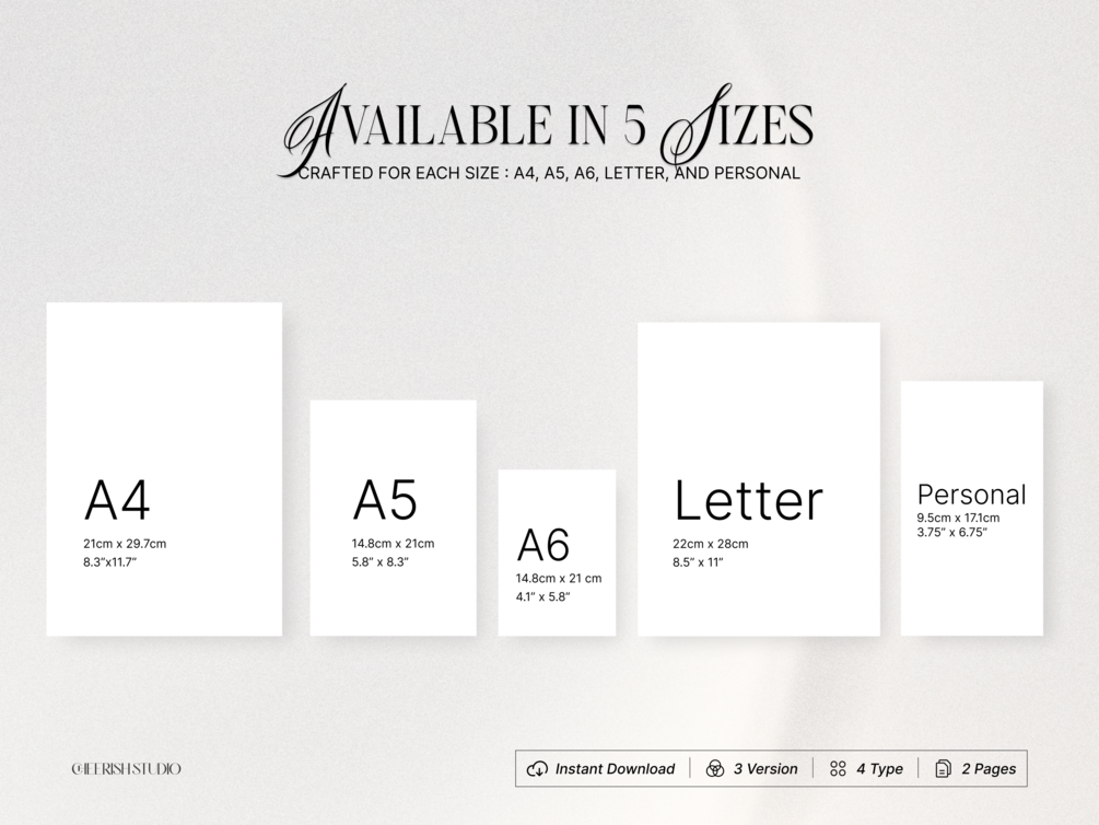 • This Planner is Available 5 sizes -A4, A5, A6, Letter, and Personal Size